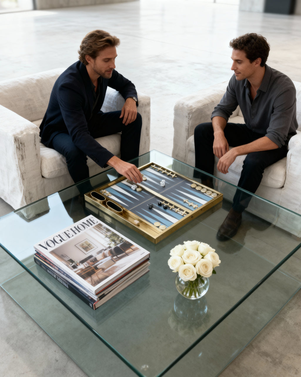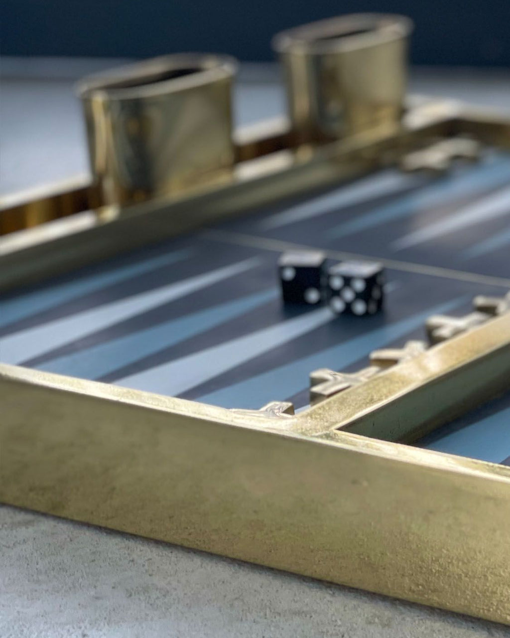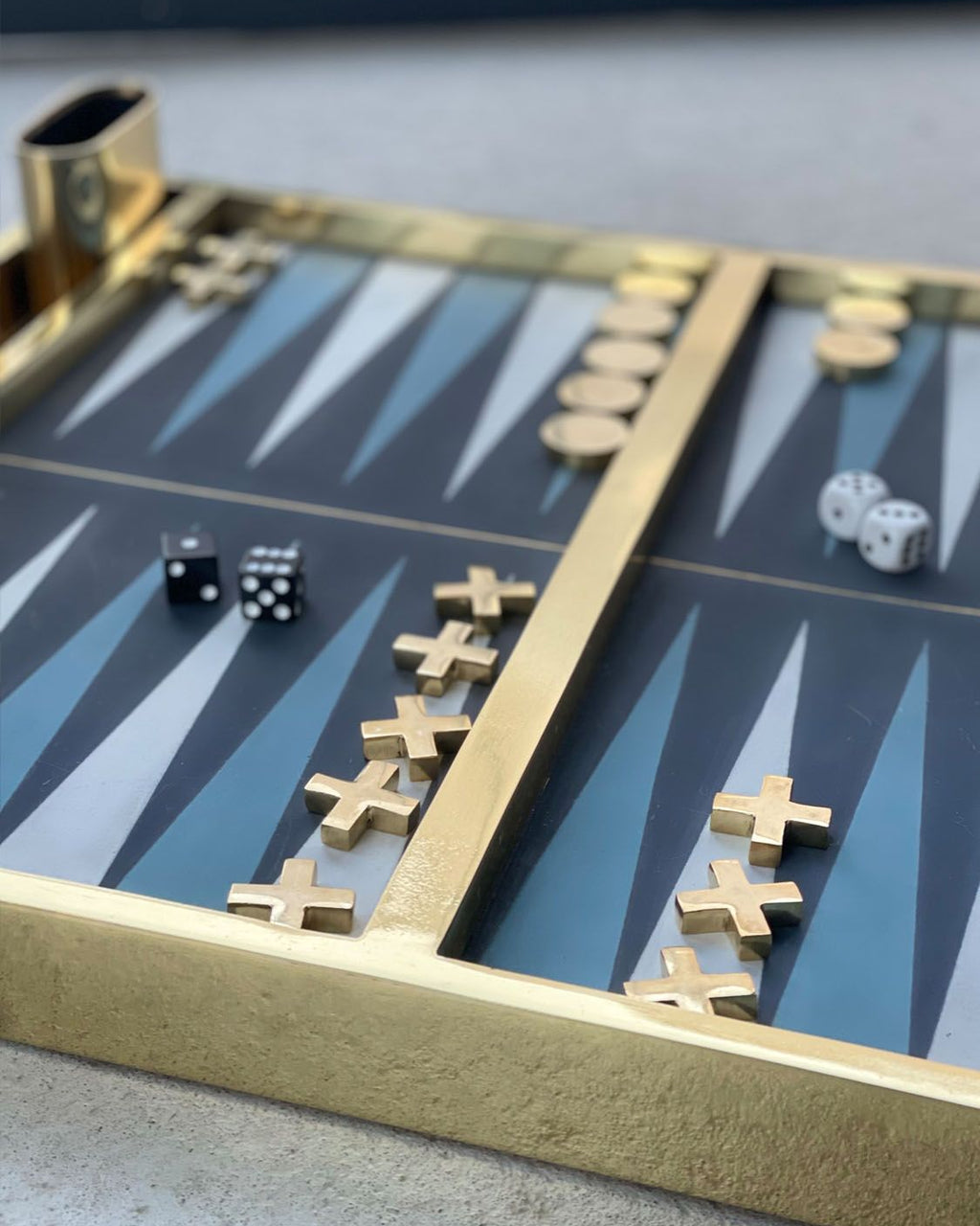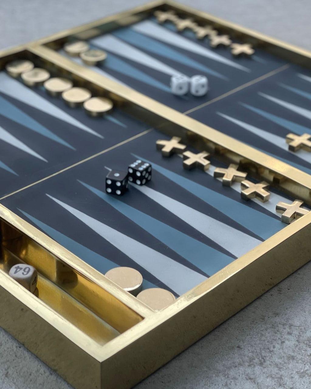 Experience the ultimate blend of art and play with this handcrafted backgammon set. Made from fine brass with a leather playing surface, every detail showcases exceptional craftsmanship. The intricately designed pieces and striking concrete-and-brass board deliver timeless elegance and cultural depth. With dimensions 53 × 42 cm, height 4.5 cm, and weighing 29 kg, this set is as durable as it is visually stunning. Perfect for collectors and luxury homes.
