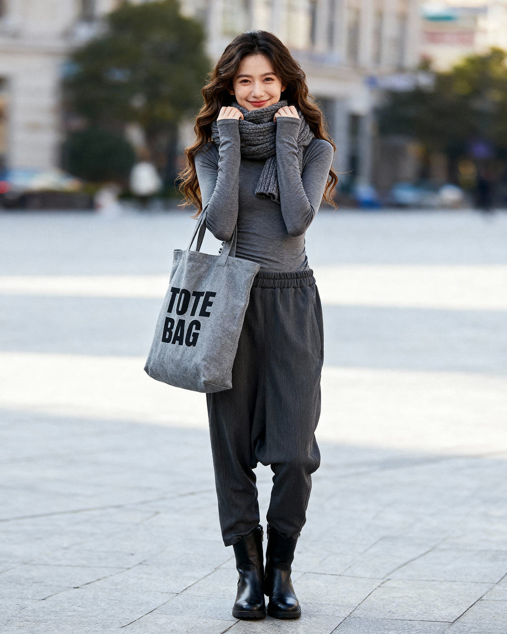 Die dezent integrierten Seitentaschen sorgen für Funktionalität, ohne die Silhouette zu betonen. Der dekorative Typostreifen auf der Vorderseite setzt ein bewusstes Statement – unaufgeregt und individuell.