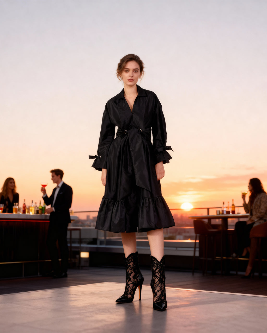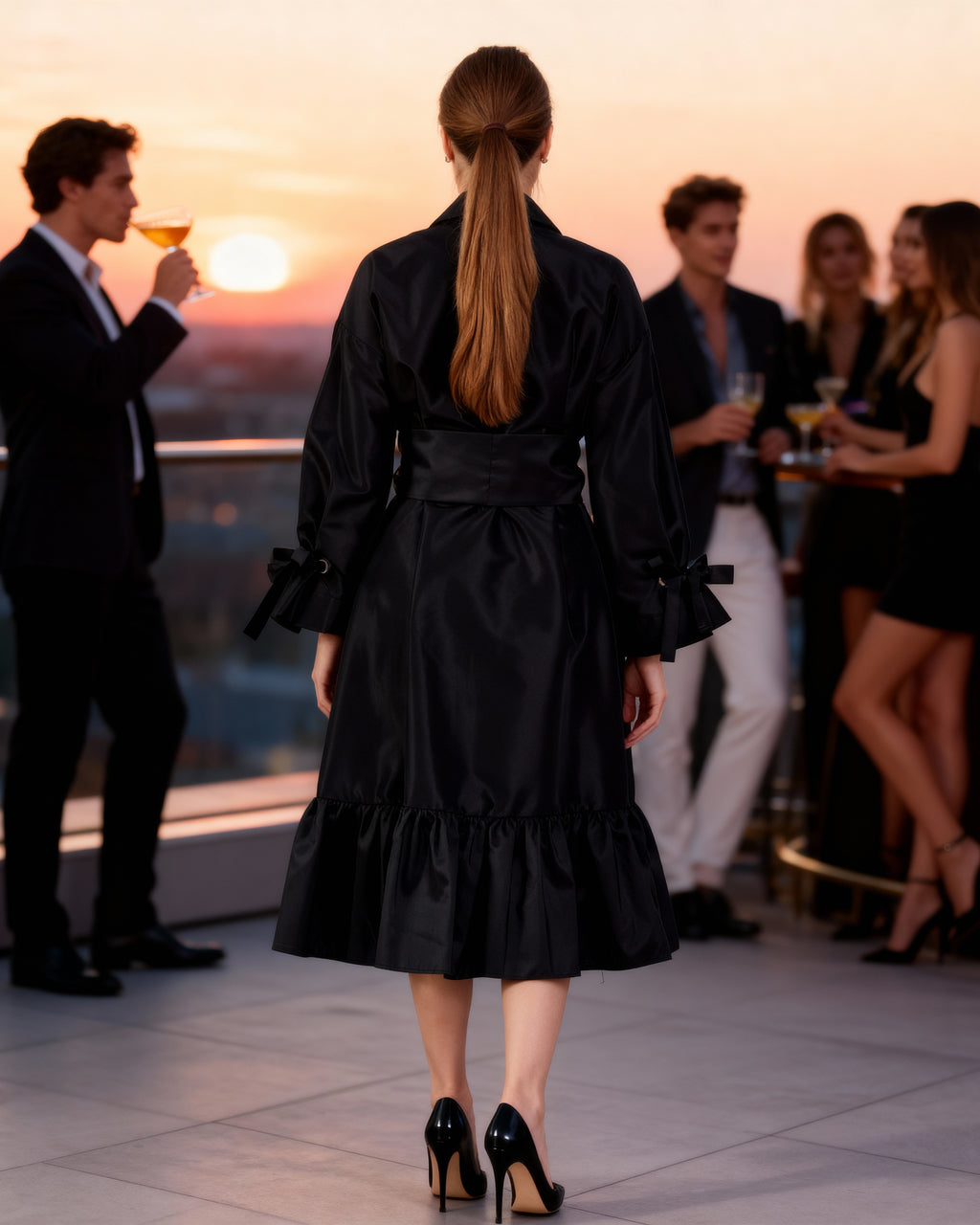 Ευελιξία στο στιλ – Η ζώνη δένεται μπροστά ή πίσω, ιδανική για επίσημες και κοινωνικές εμφανίσεις.