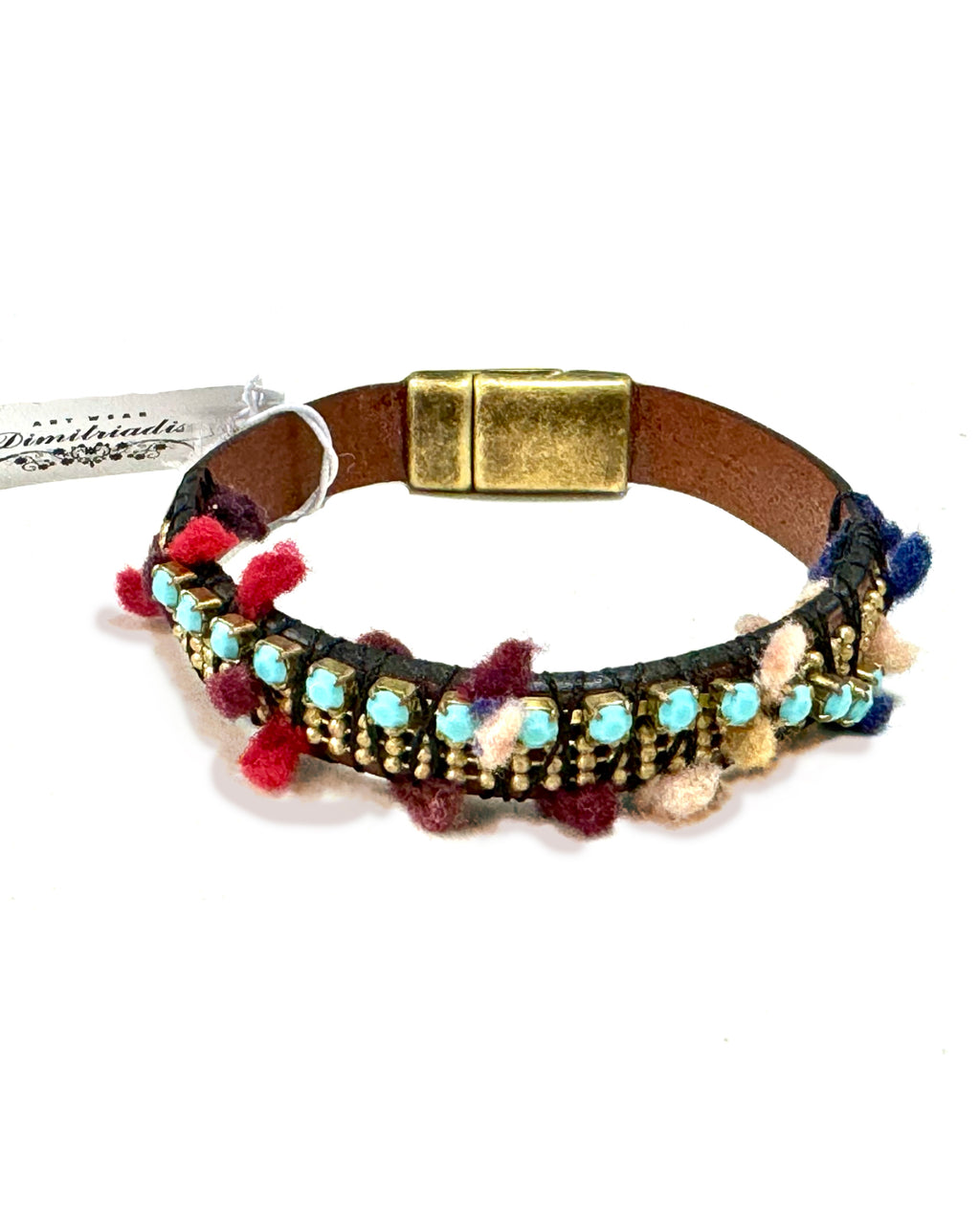 Handmade leather bracelet by Art Wear Dimitriadis, a woman-owned family brand from Greece celebrated for its vibrant designs and exceptional craftsmanship.