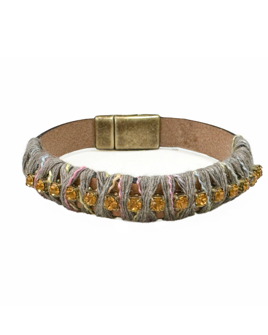 Each bracelet is individually handmade using a refined blend of premium leather, metal, textile, and strass, finished with a gold-toned magnetic clasp for effortless clipping and unclipping. The result is a unique wearable artwork—a statement accessory that perfectly complements your VVC clothing and everyday outfits alike.