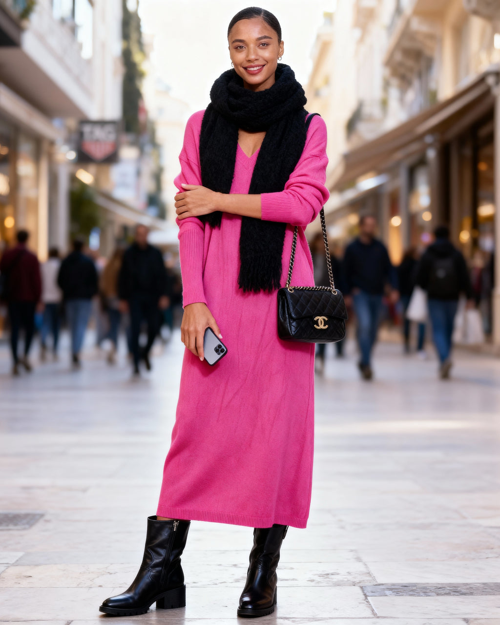 Made from premium Italian knit, the fabric drapes beautifully and feels incredibly gentle on the skin. This is your go-to dress for creating a refined, elongated silhouette with zero effort.