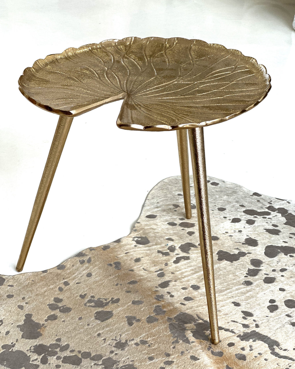 Bring elegance and luxury to your living space with the “Gold Lilly” side table, a stunning gold-colored accent tableinspired by the shape of a water lily leaf. Perfect as a small side table, coffee table, or decorative accent, it combines style with functionality.
