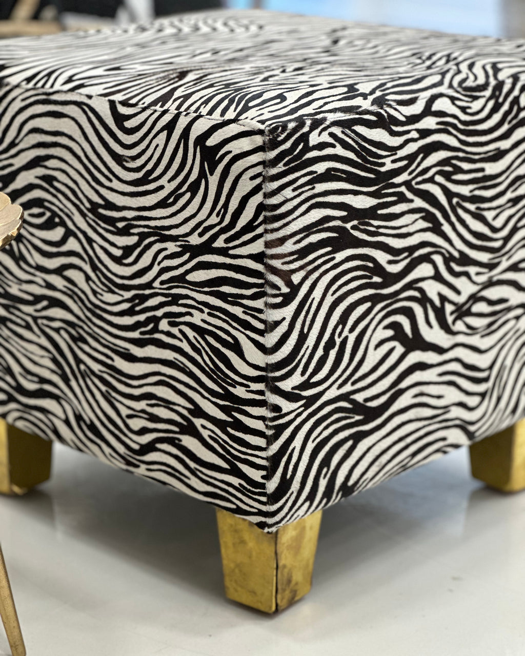 This stool perfectly matches the Zebra Cowhide Leather Armchair in the VVC SHOP for a coordinated designer seating set.